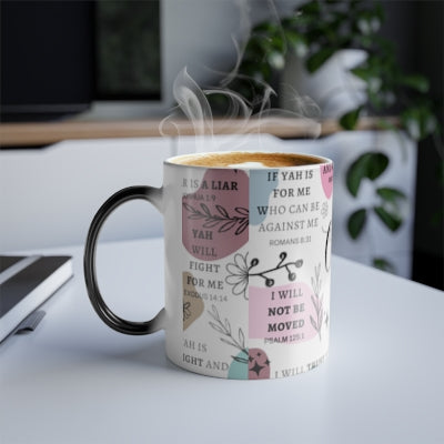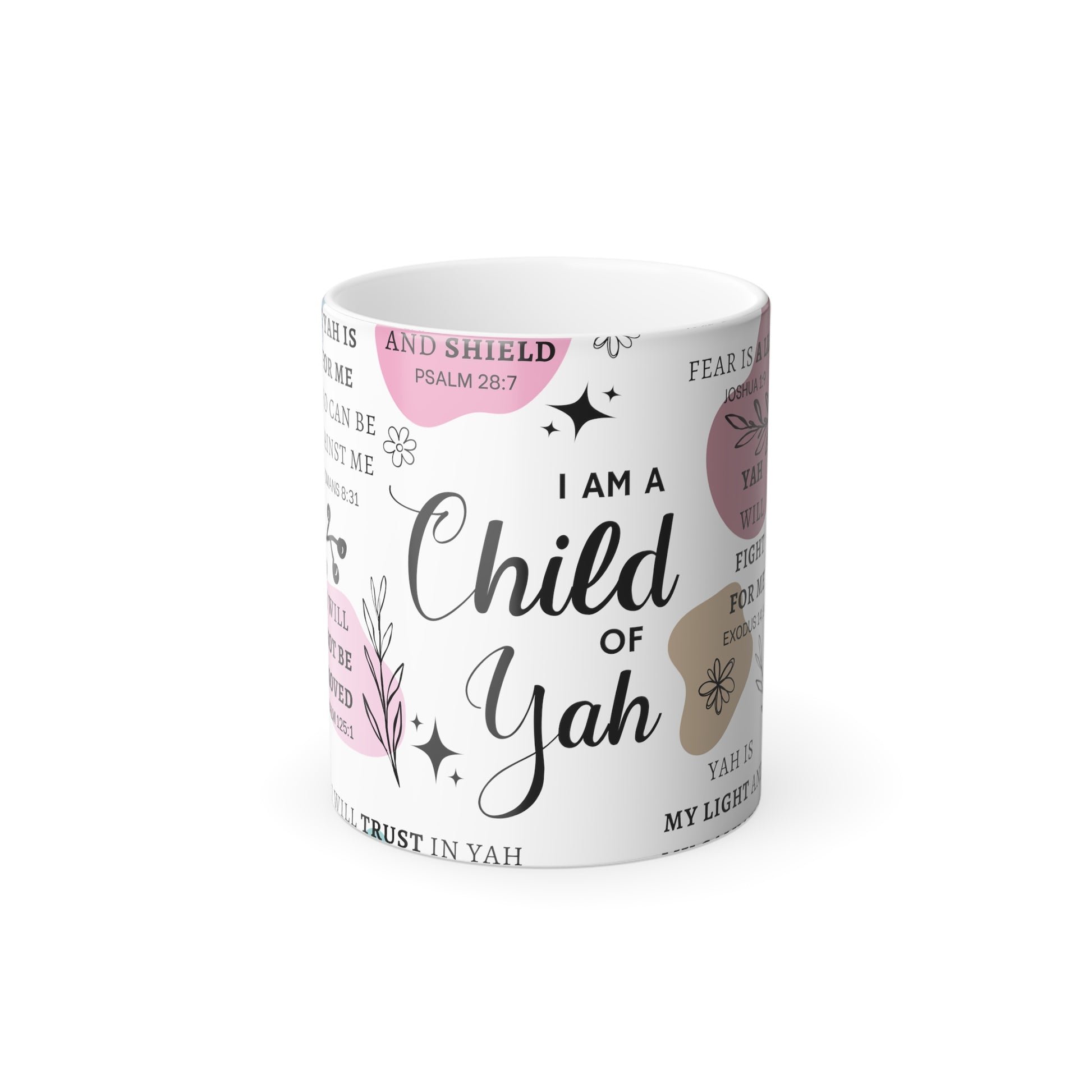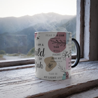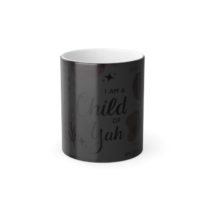 Elevate your gift-giving game with our 11oz Color Morphing Mug, featuring the empowering message "I am a Child of Yah" on the front. This personalized treasure adds a touch of magic to every sip. Watch as the heat-reactive surface brings your custom design to life when the mug warms up, making it a delightful surprise for friends and loved ones. Crafted from durable ceramic, this mug transitions from sleek black to white inside as it cools down, creating a captivating visual effect. The ergonomic C-shaped handle ensures a secure grip, while the generous 11oz capacity makes it ideal for enjoying your favorite beverages. Treat yourself or someone special to the enchantment of our Color Morphing Mug, the perfect blend of style and functionality.