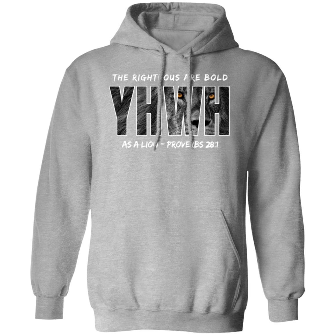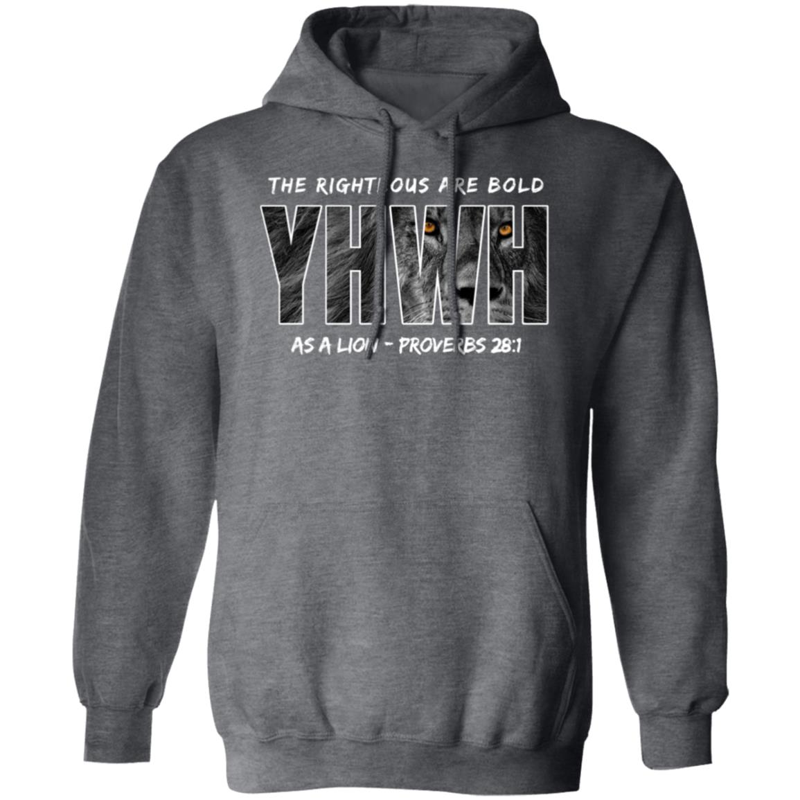 Stay warm and bold with our Pullover Hoodie featuring the empowering message "The Righteous Are Bold As A Lion - Proverbs 28:1" in striking white letters. Crafted for comfort and durability, this hoodie is the perfect blend of style and faith, keeping you cozy while making a bold statement about your beliefs.