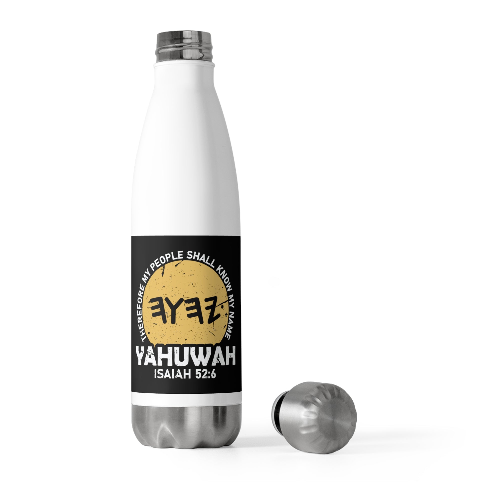 Experience the perfect blend of functionality and faith with our Stainless Steel Water Bottle. Shop now and carry the message of Isaiah 52:6 with you on all your journeys.