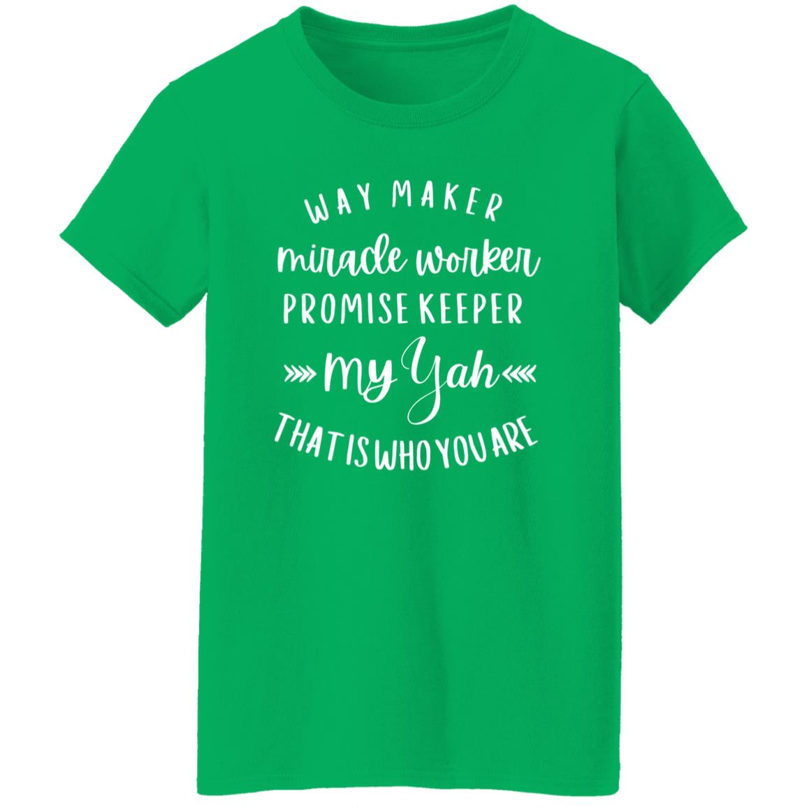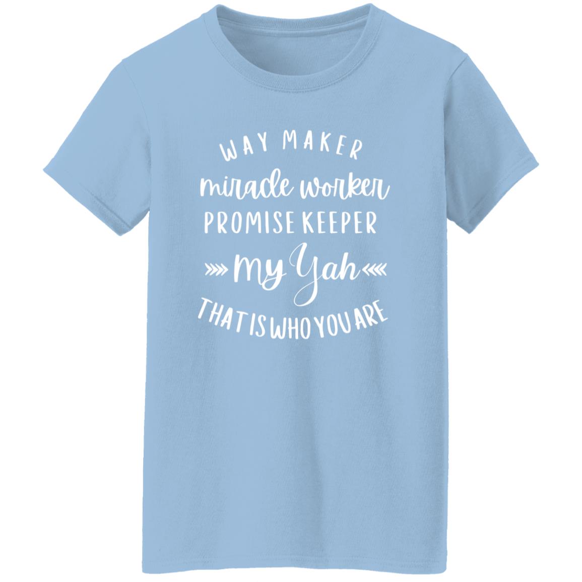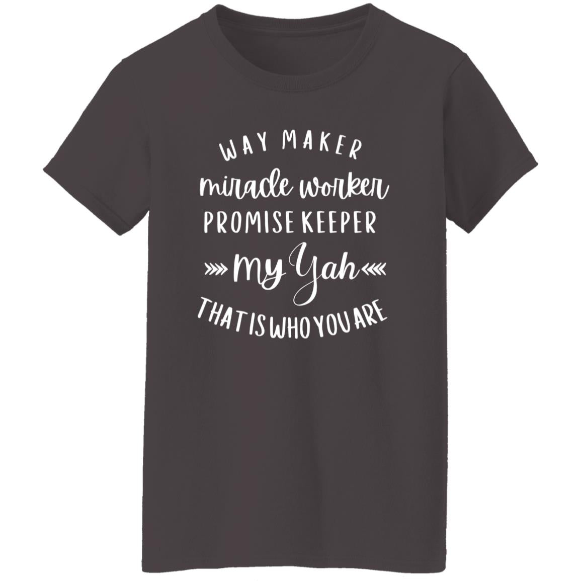 Elevate your casual wardrobe with our Ladies' Casual Scoop Neck T-Shirt, featuring the empowering message "Way Maker, Miracle Worker, Promise Keeper, My Yah That is Who You Are". Crafted from 5.3oz 100% preshrunk cotton for comfort and durability, this tee ensures a soft feel against the skin. Available in various colors including Ash, Sport Grey, and Dark Heather, it offers versatility to match any style. The feminine 1/2-inch rib mid-scoop neck and slightly tapered Missy fit provide a flattering silhouette, while double-needle stitching throughout ensures long-lasting quality. Whether you're running errands or relaxing at home, this tee is the perfect expression of faith and fashion.