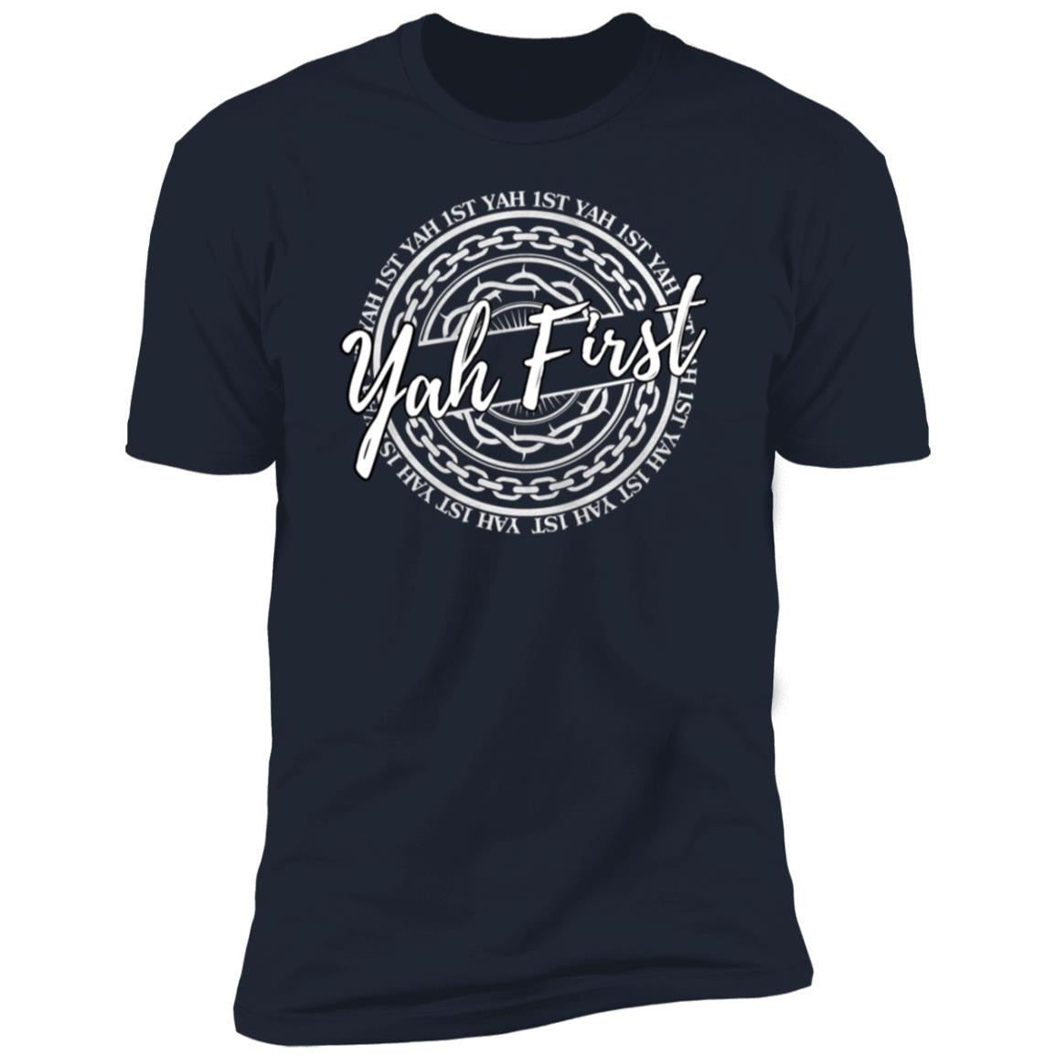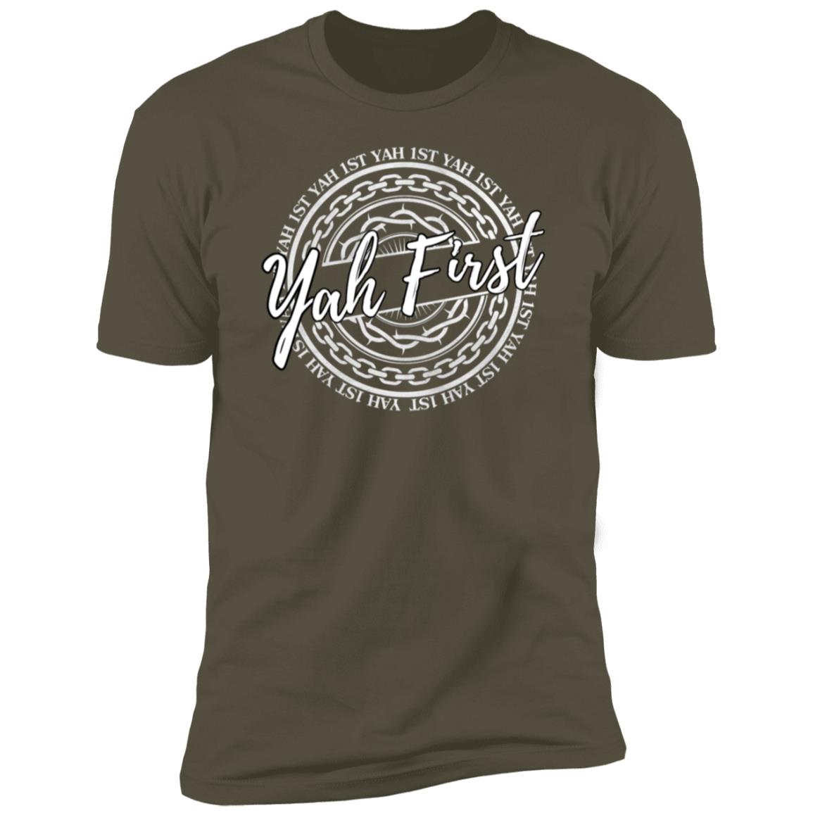 YAH FIRST In White Letters Men's Premium Short Sleeve T-Shirt